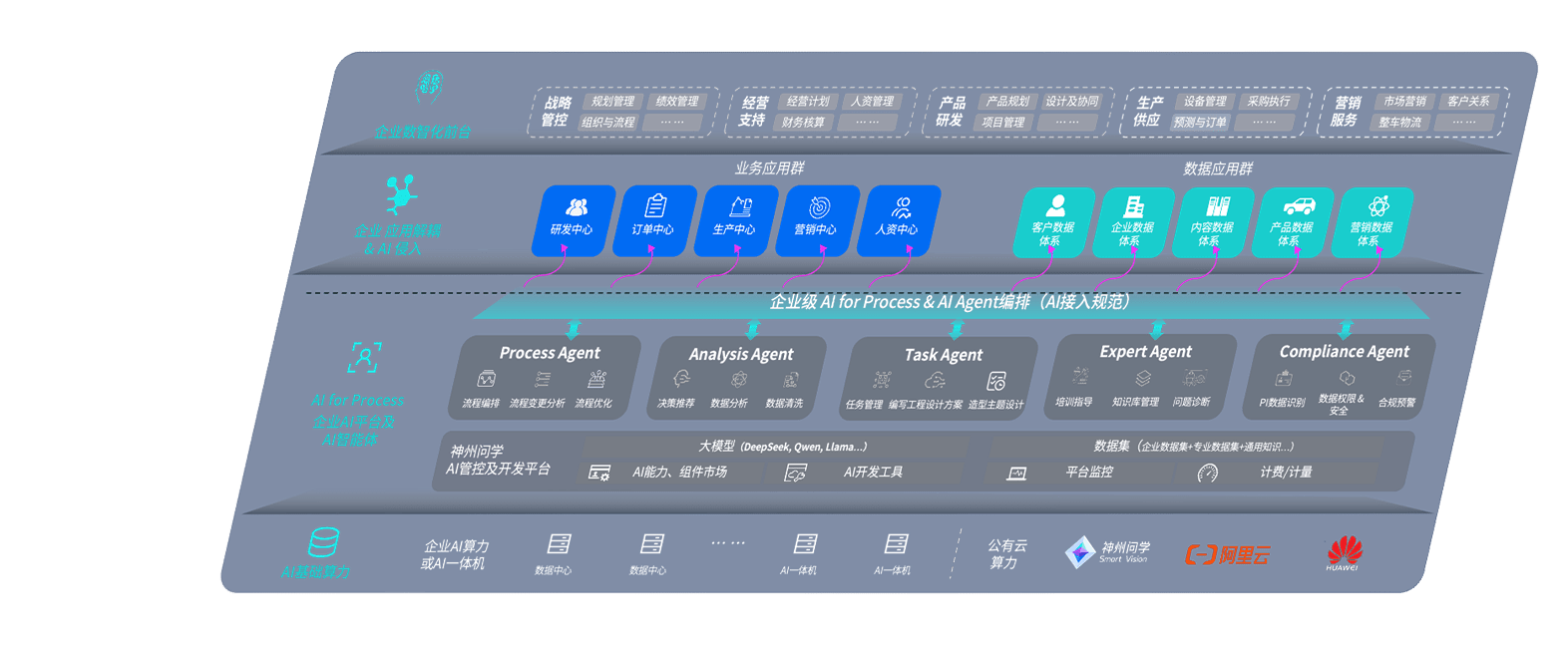 端到端的一站式AI工作空间深度融合了从企业战略规划到日常经营的全流程业务板块,,,,定向解决车企内部领域多、、、、部门多、、链条长、、、、场景碎片化等难题,,,支持车企快速构建以AI为核心的生产力写作体系,,,,实现任务执行与AI能力的无缝集成与交互